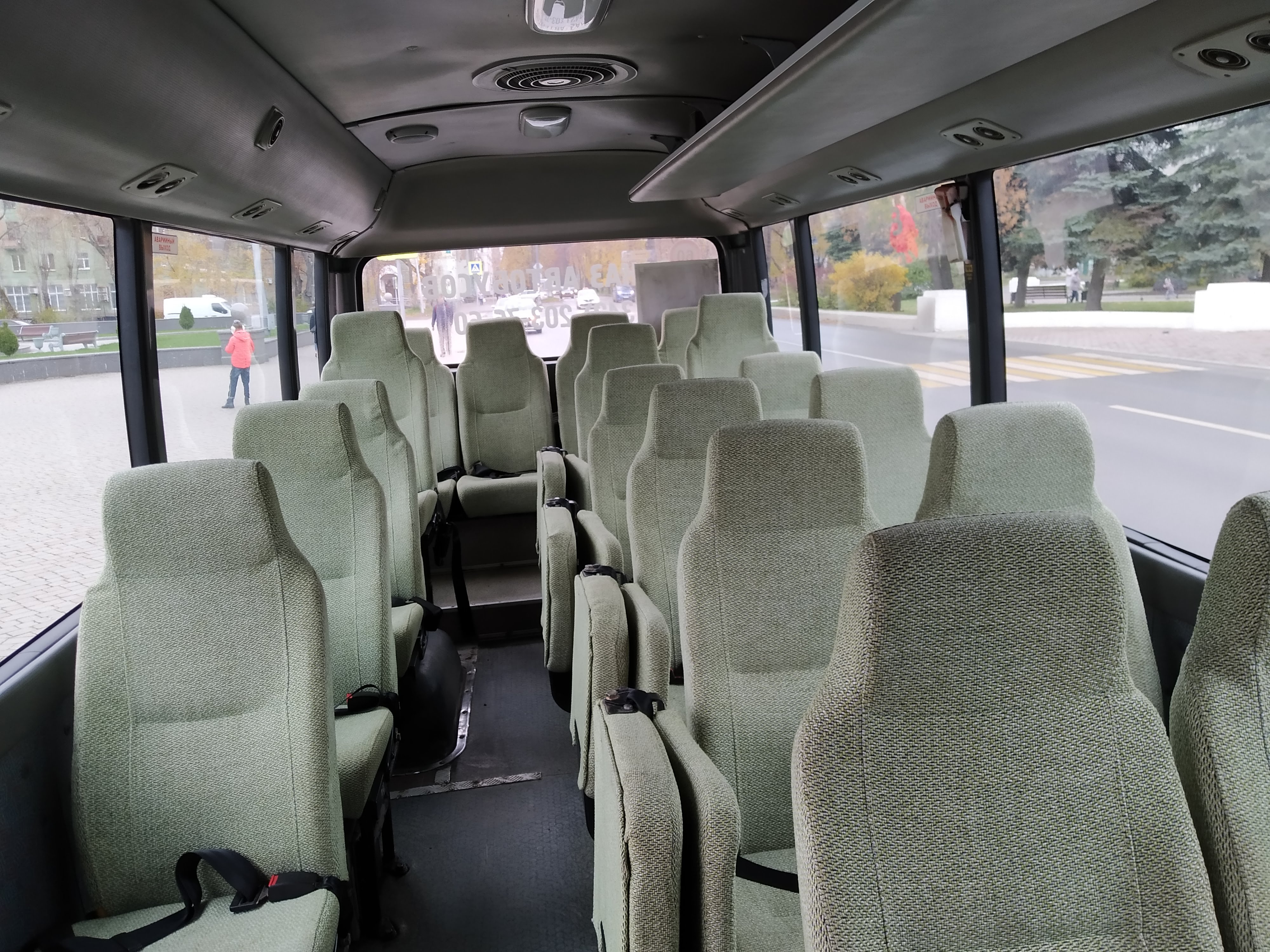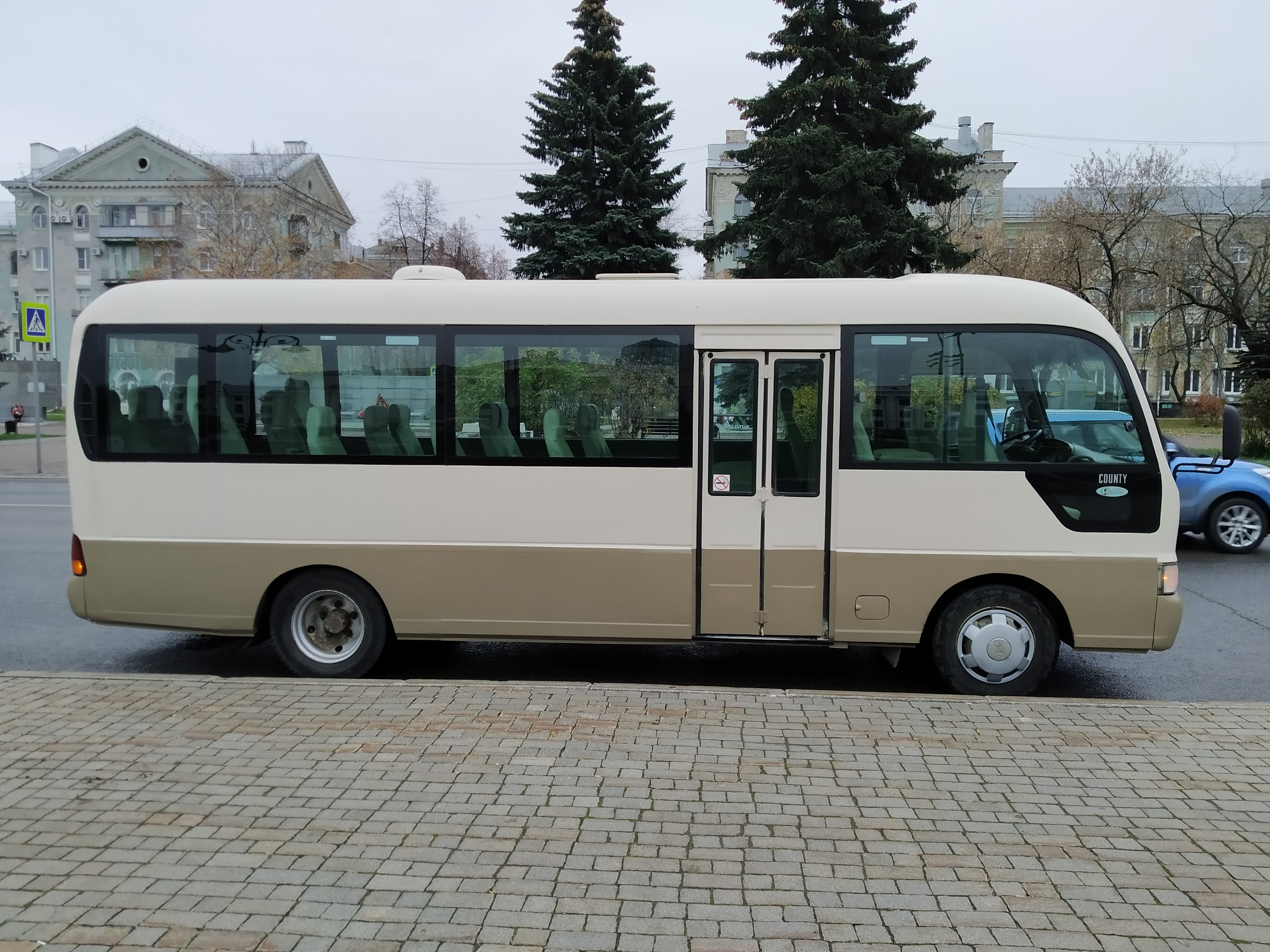 Автобус HYUNDAI COUNTY класса «эконом» отличается комфортом и безопасностью. Комфорт обеспечивают мягкие сиденья с большими спинками и мягкими сиденьями. Окна автобуса слегка затонированные, смягчающие солнечные лучи; при желании окна можно прикрыть шторками. Солидный проход между рядами сидений позволит свободно передвигаться по салону даже с вещами в руках. Просторный дверной проем позволит беспрепятственно и быстро осуществлять посадку и высадку пассажиров.